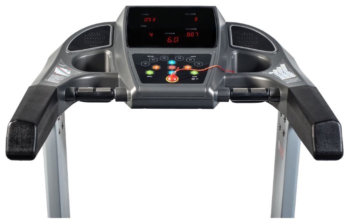 AUX; встроенный кардиодатчик; крепление кардиодатчика: на ручке; встроенные устройства: динамики; подставка для планшета; пульсозависимых программ: 2||аудио разъем 3.5 мм |