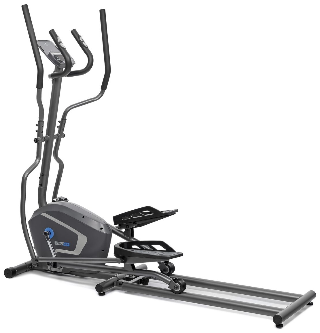 питание: сеть 220 Вольт; рама биовекторная (передний привод); инерционный вес маховика 15.4 кг; тип сочленений: втулки; педальный узел: трехкомпонентный с реверсивным ходом; педали: антискользящие, увеличенного размера; ручной режим; подставка под мобильное устройство; зарядка мобильного устройства; размеры в сложенном виде: 79*58*157 см |