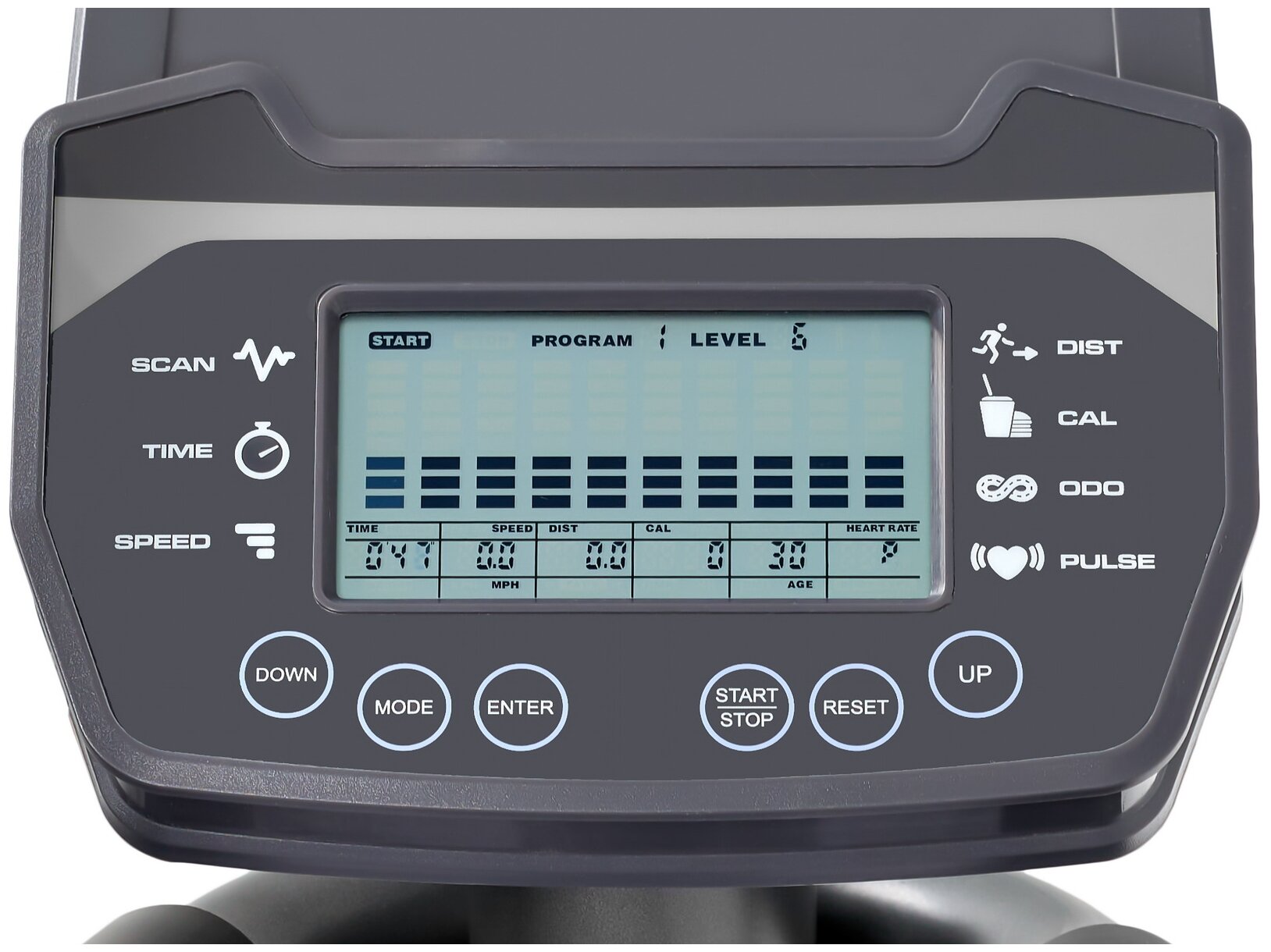 частота вращения||общее время тренировки||пройденное расстояние||пульс||расход калорий||текущая скорость |