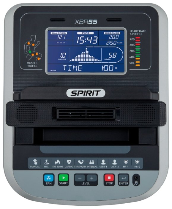 модуль Bluetooth 4.0, поворотный вентилятор; тип кардиодатчика: встроенный; крепление кардиодатчика: на руле, на грудь; количество пульсозависимых программ: 2; возможность подключения: к кардиографу, компьютеру, беспроводному кардиодатчику |