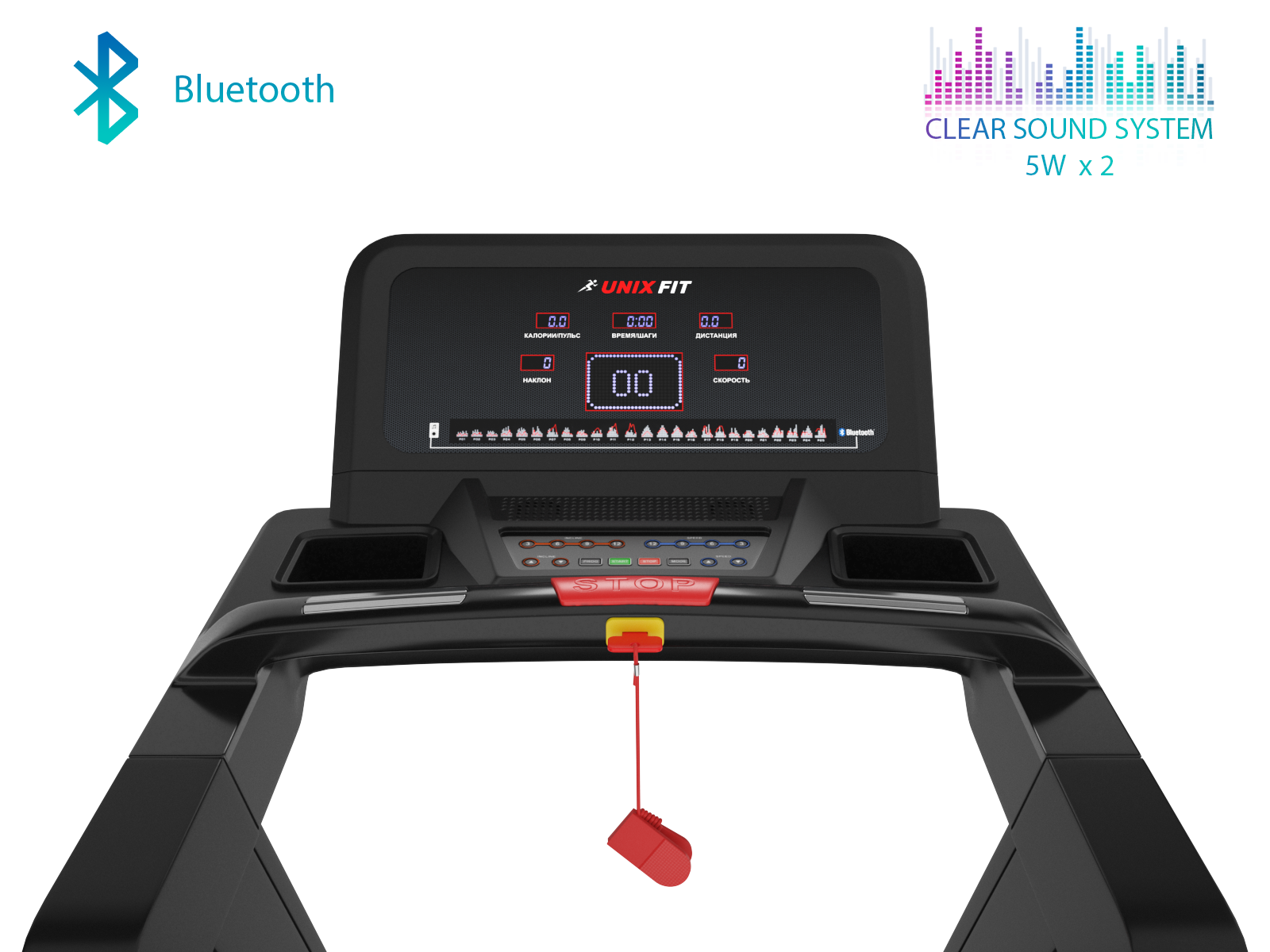 Для того, чтобы тренировка прошла легко, с помощью Bluetooth подключайте ваш смартфон или планшет и прослушивайте любимые треки или подкасты прямо во время занятий! Кроме того, у дорожки есть специальная подставка для вашего девайса. Бутылочку с водой удобно расположить в одном из двух карманов по краям консоли.